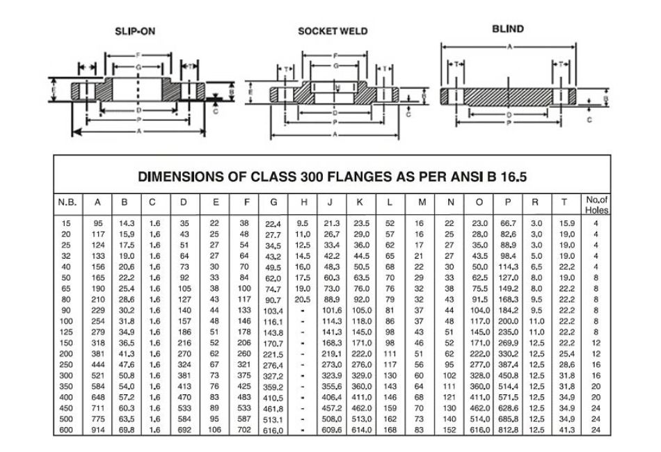 Thông số kỹ thuật tiêu chuẩn mặt bích ANSI/ASME Class 300 (300#)