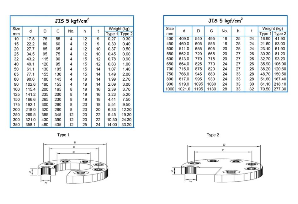 Thông số kỹ thuật tiêu chuẩn mặt bích JIS 5K